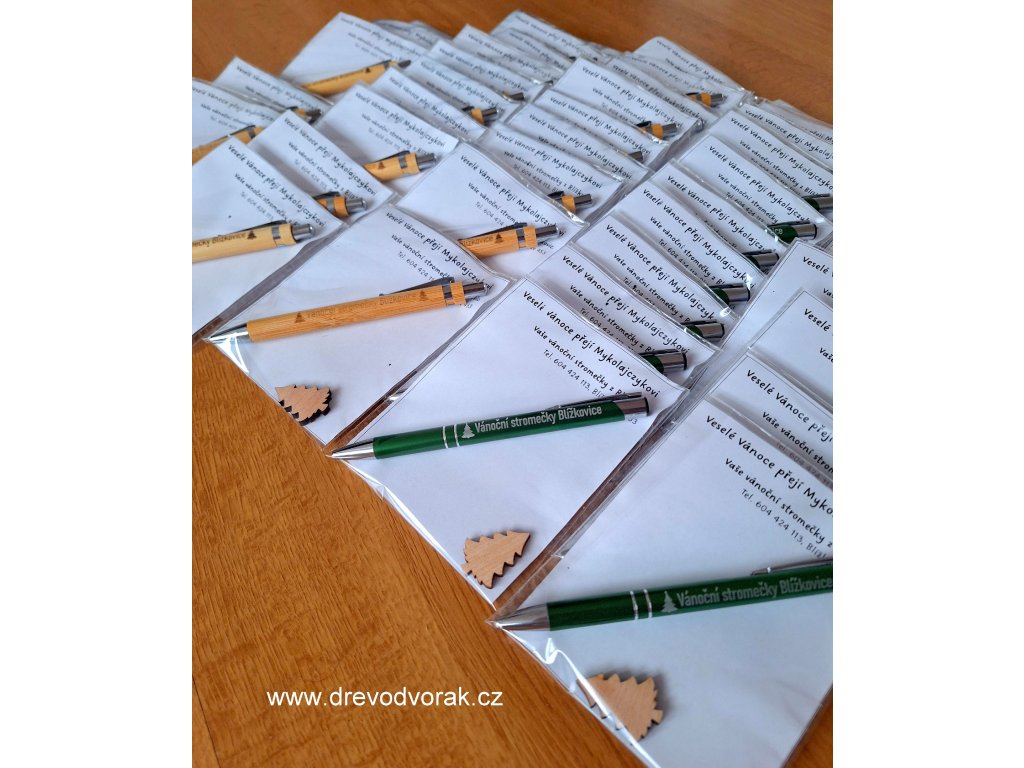 Pokud byste si přáli nápis upravit, vyberte prosím variantu VLASTNÍ MOTIV a do poznámky nám napište, co si přejete na propisku napsat. Poznámka se zadává při vyplňování osobních údajů v košíku (3. krok). Při vlastním textu požadujeme platbu předem. Po úhradě Vám zašleme náhled písma ke kontrole. Upravený výrobek na přání není možné vrátit.
