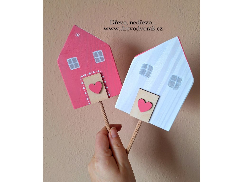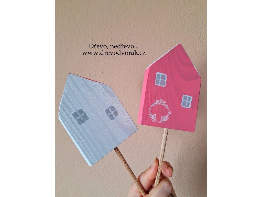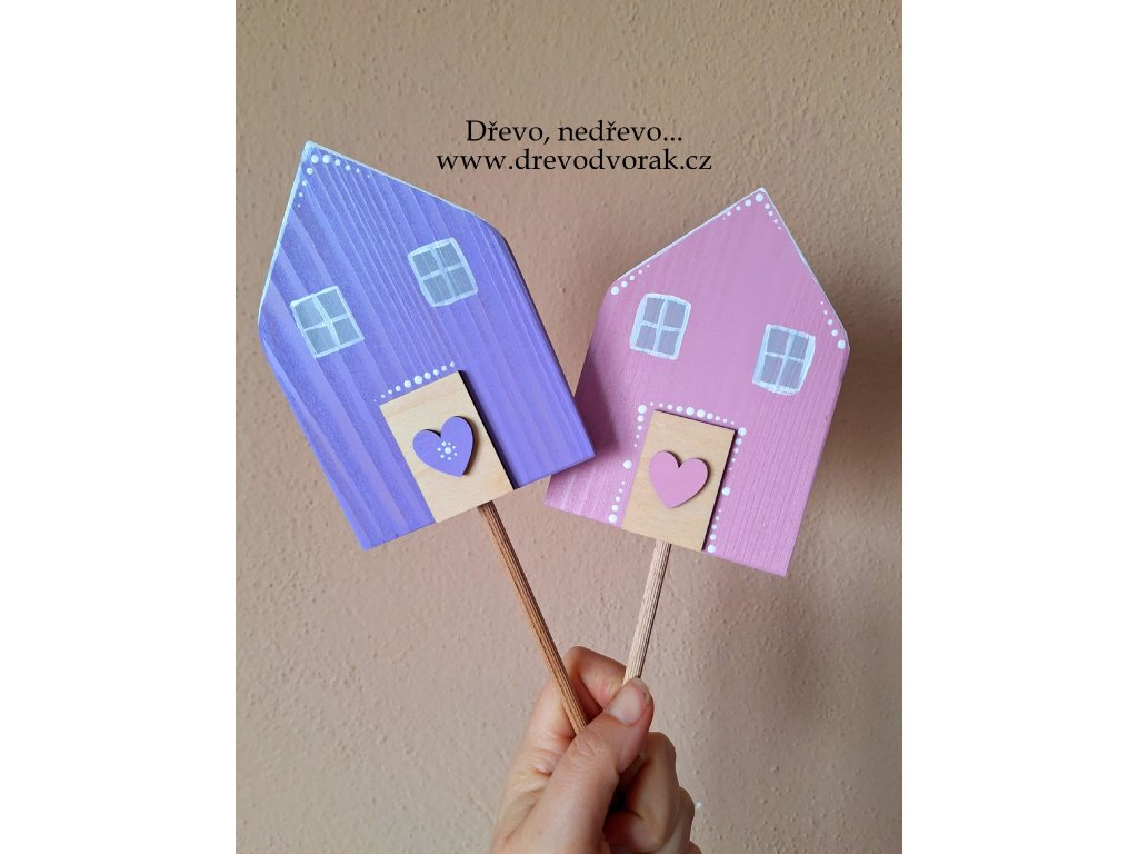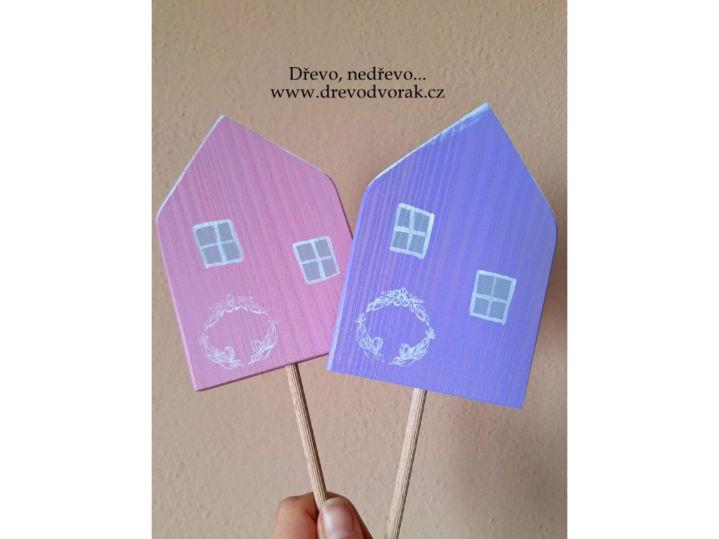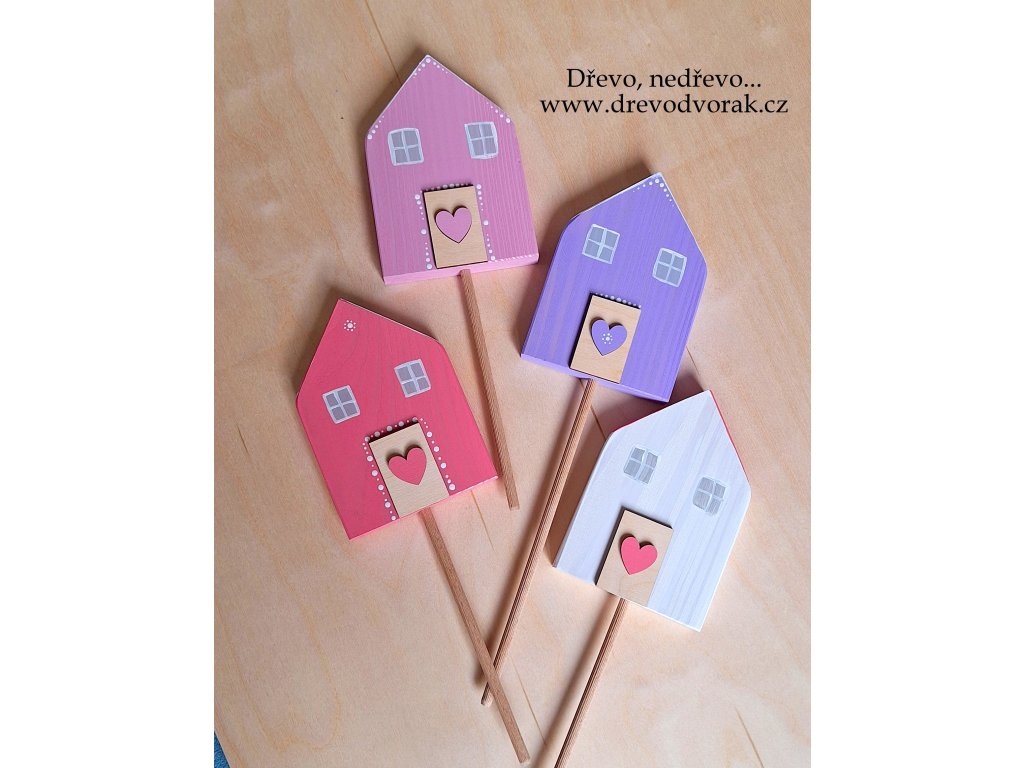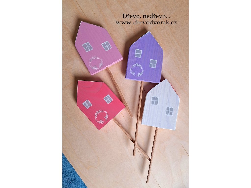 Novinka - domeček z modřínového dřeva ručně malovaný, který můžete využít jako volně stojící dekoraci nebo jako zápich do květináče.