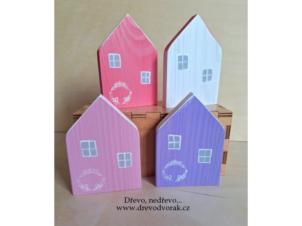 Poctivý kousek dřeva. Oboustranně malované domečky.