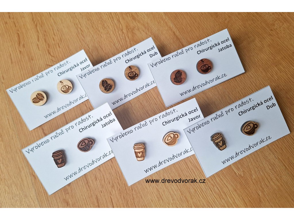 - Náušnice puzety - 2 různé páry náušnic - jiný motiv, jiné dřevo