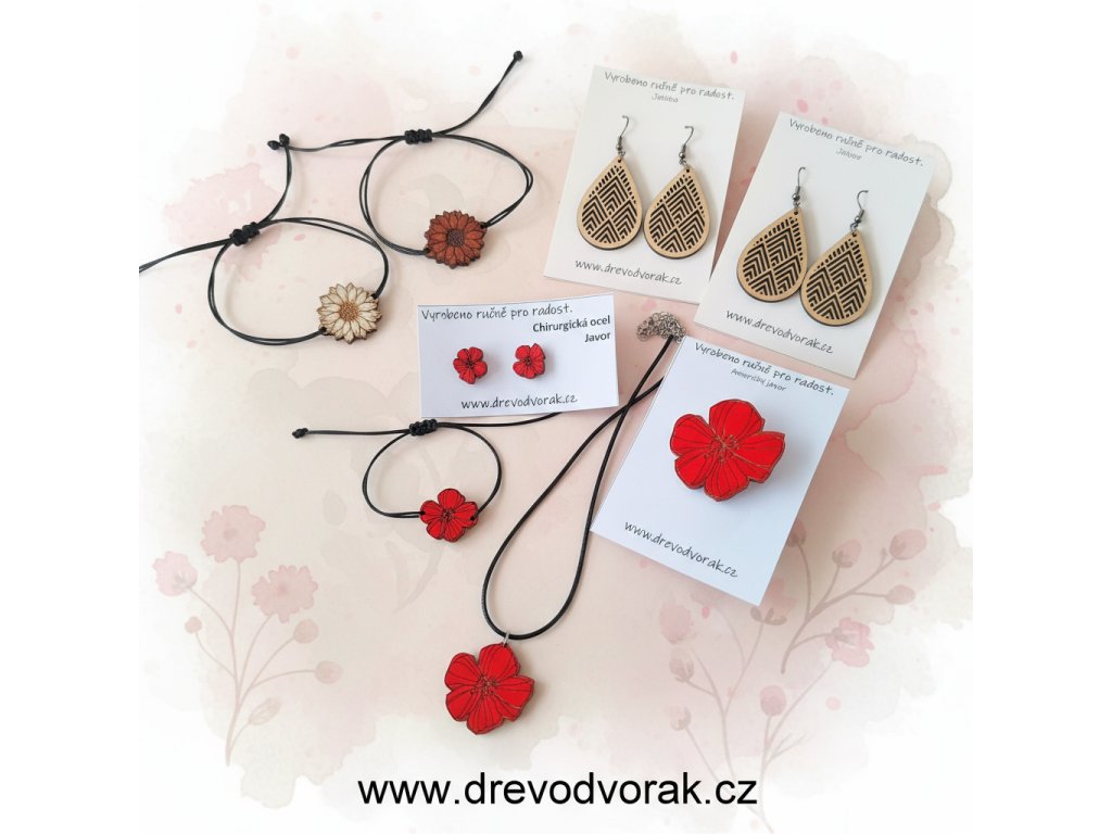 V galerii najdete pouze ukázku, akce se týká veškerých našich šperků. Více informací najdete přímo u konkrétních druhů šperků, které si můžete detailně prohlédnout na našem e-shopu www.drevodvorak.cz/drevene-sperky.