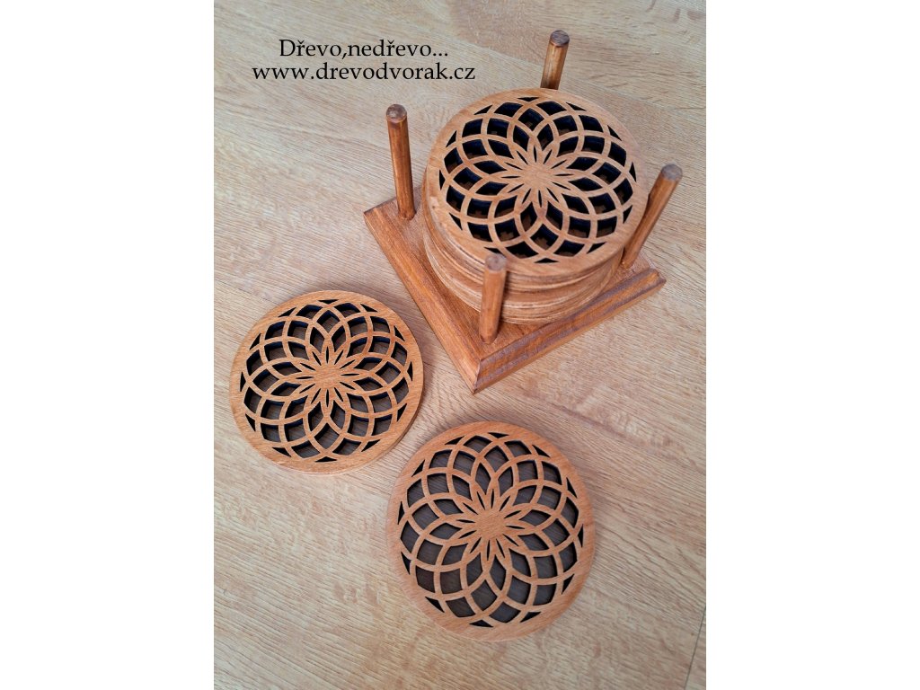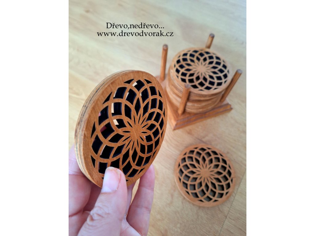 Podtácky jsou vyřezávané laserem, poté pečlivě ručně broušeny a ošetřeny lazurou v odstínu ořech.