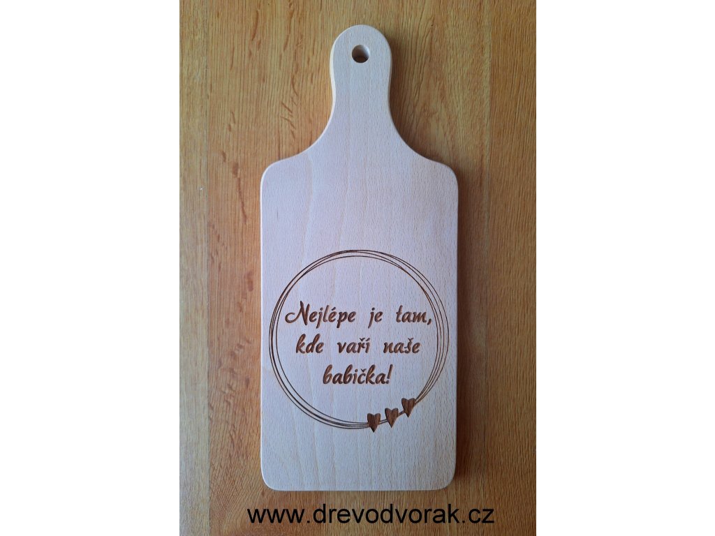 Krásný a přitom praktický dárek pro babičku - to je naše prkénko s nápisem Nejlépe je tam, kde vaří naše babička.