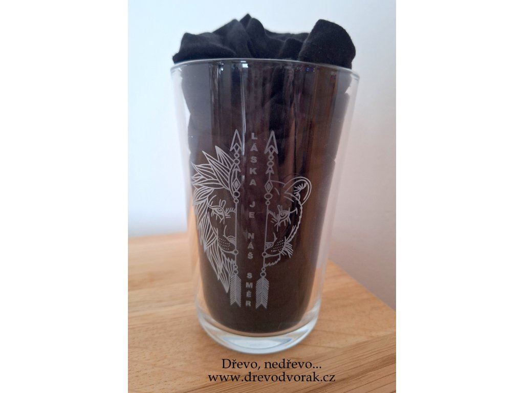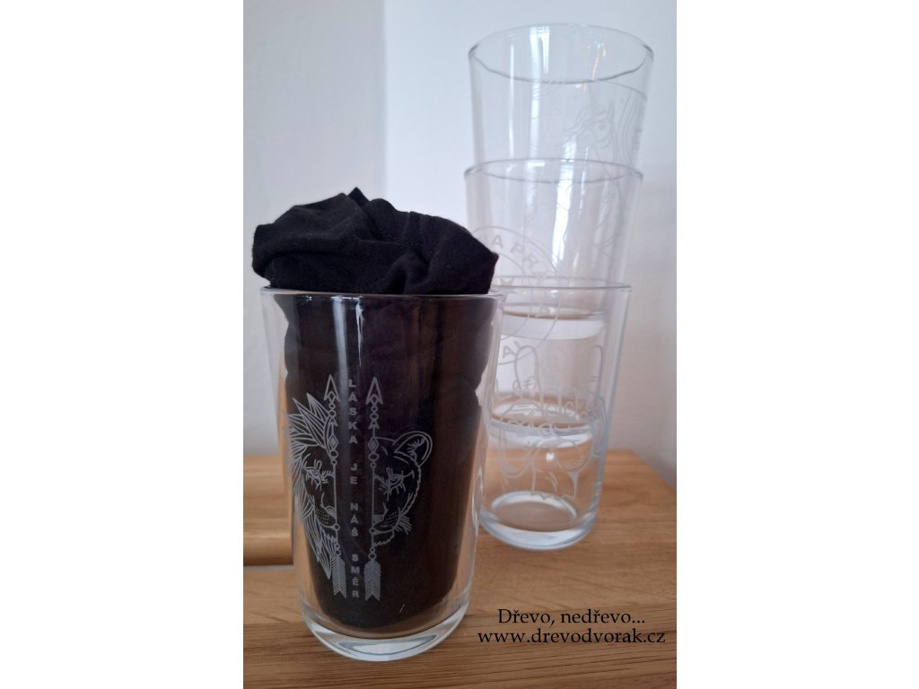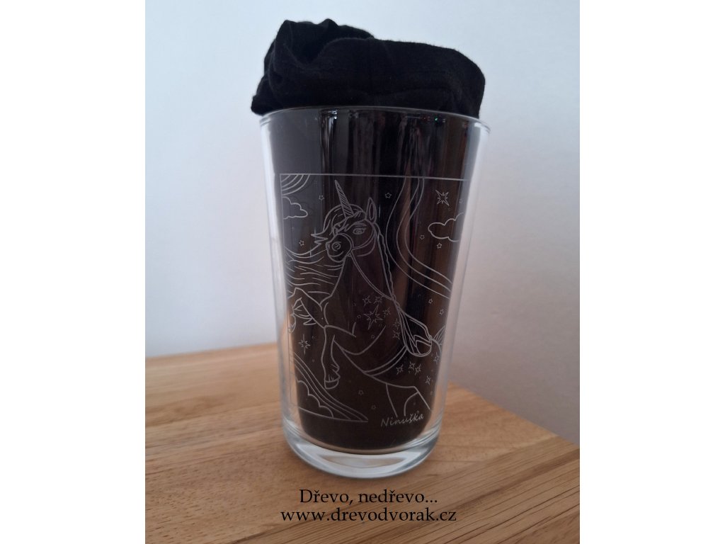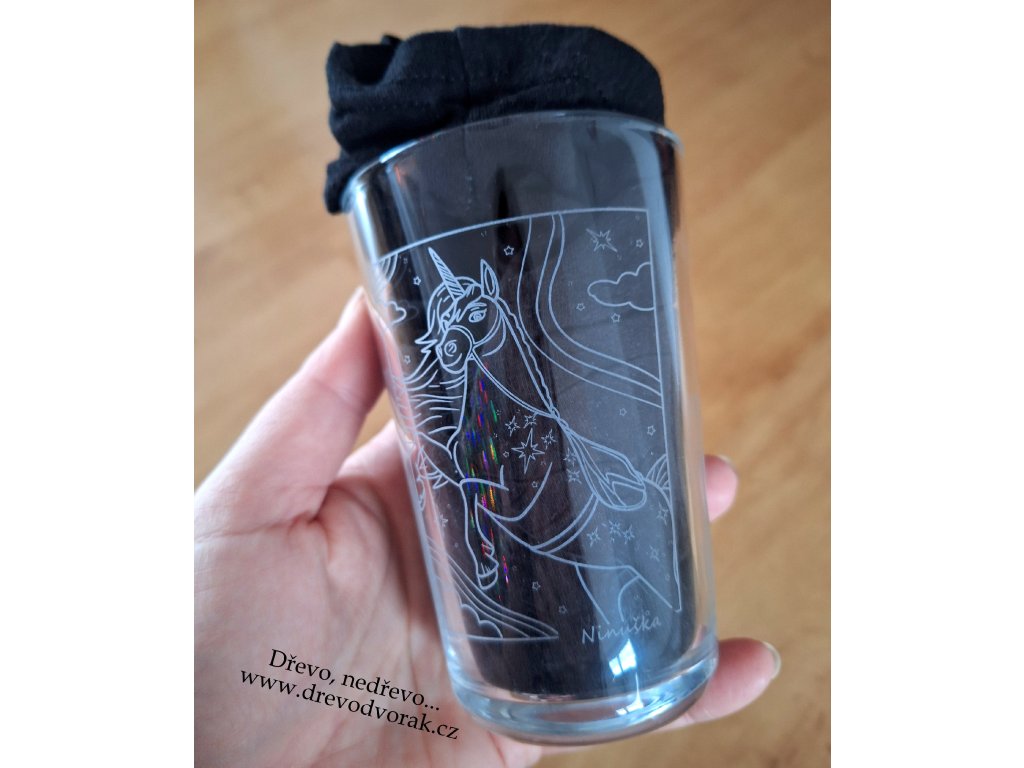 Sklenička na každodenní použití s vlastním gravírovaným nápisem nebo jednoduchým obrázkem.